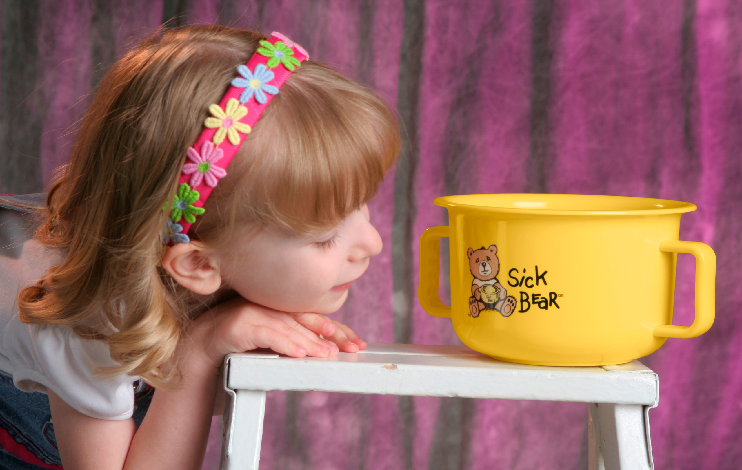 The Sick Bear® Bowl’s unique design is easily recognized by young children. When symptoms of nausea occur, they grab for it instead of a food bowl. Children like having their own container to hold when they aren’t feeling well.