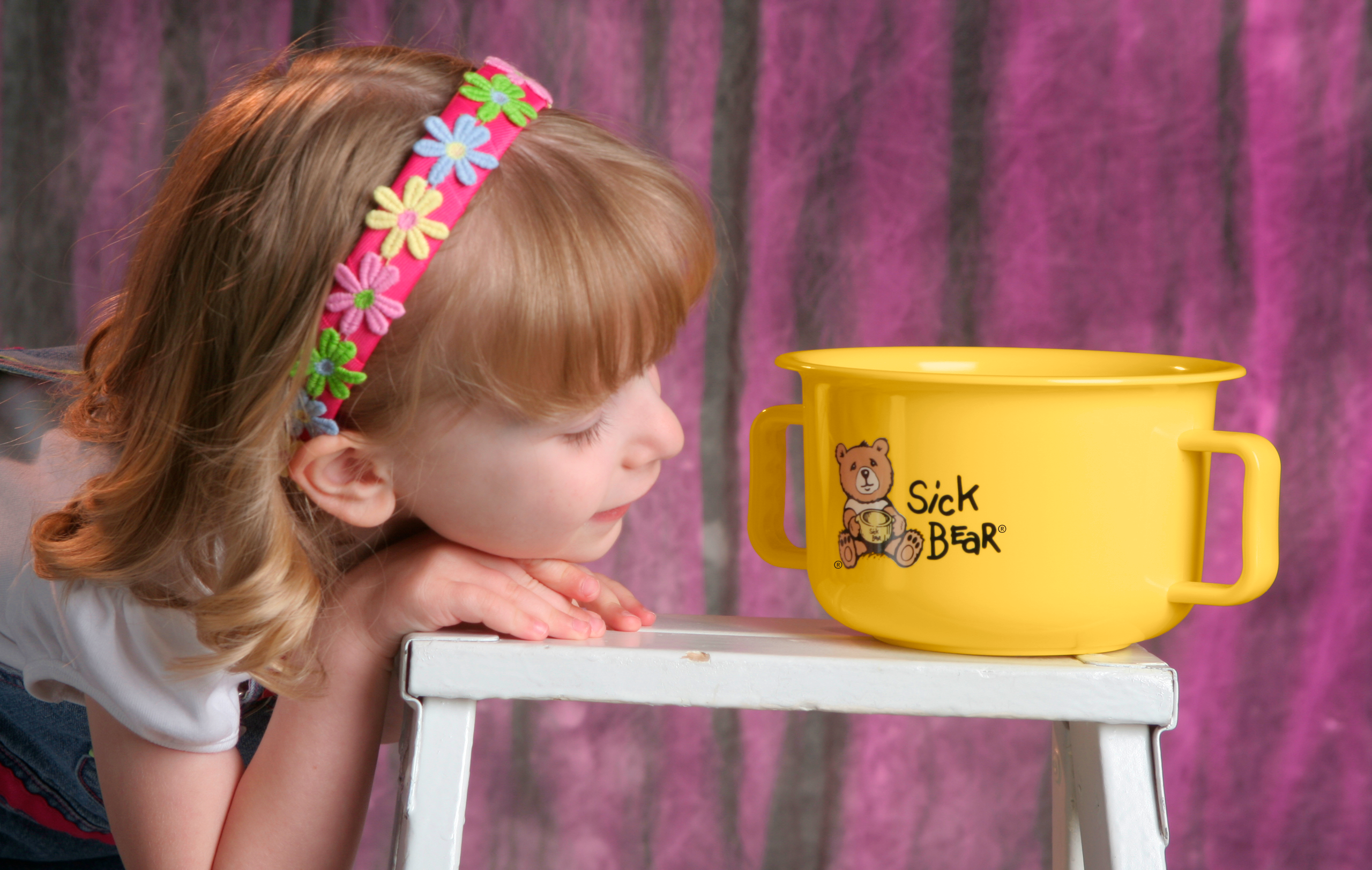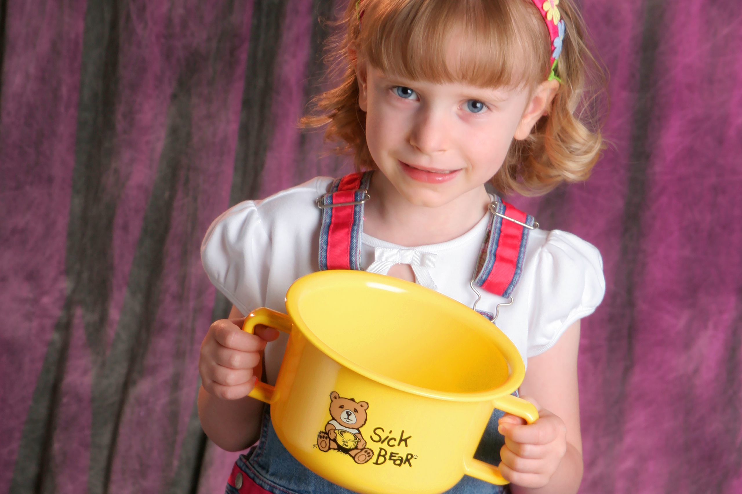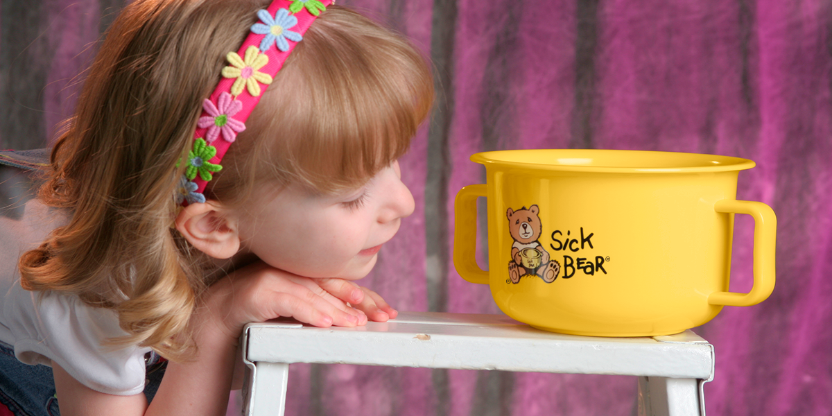 Throw-up bowl for kids. Great for nausea, vomiting, and car sickness. The Sick Bear® Bowl’s unique design and bright colors are easily recognized by young children.